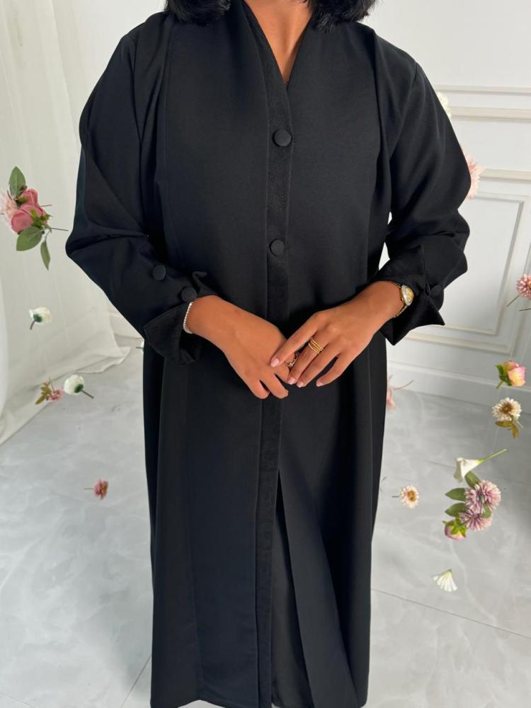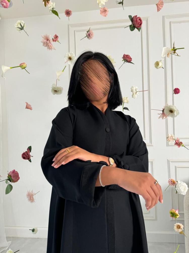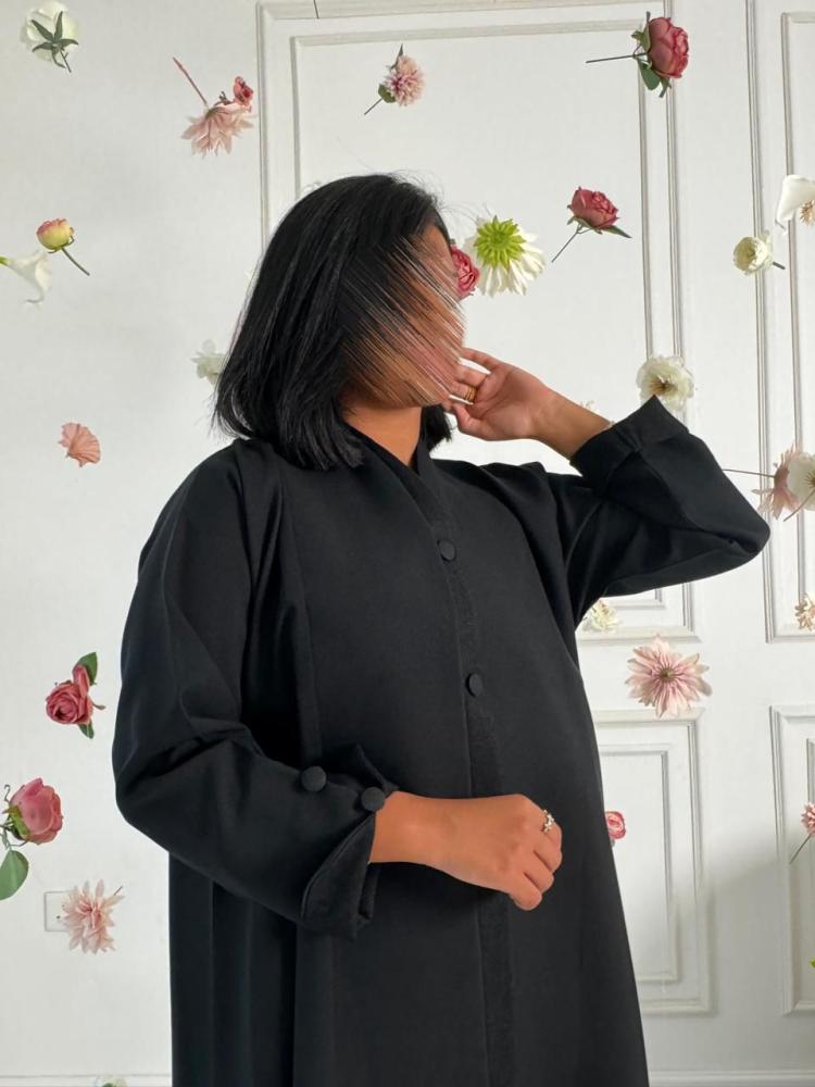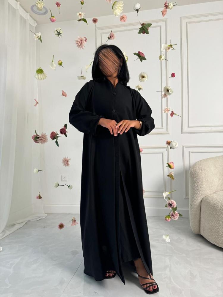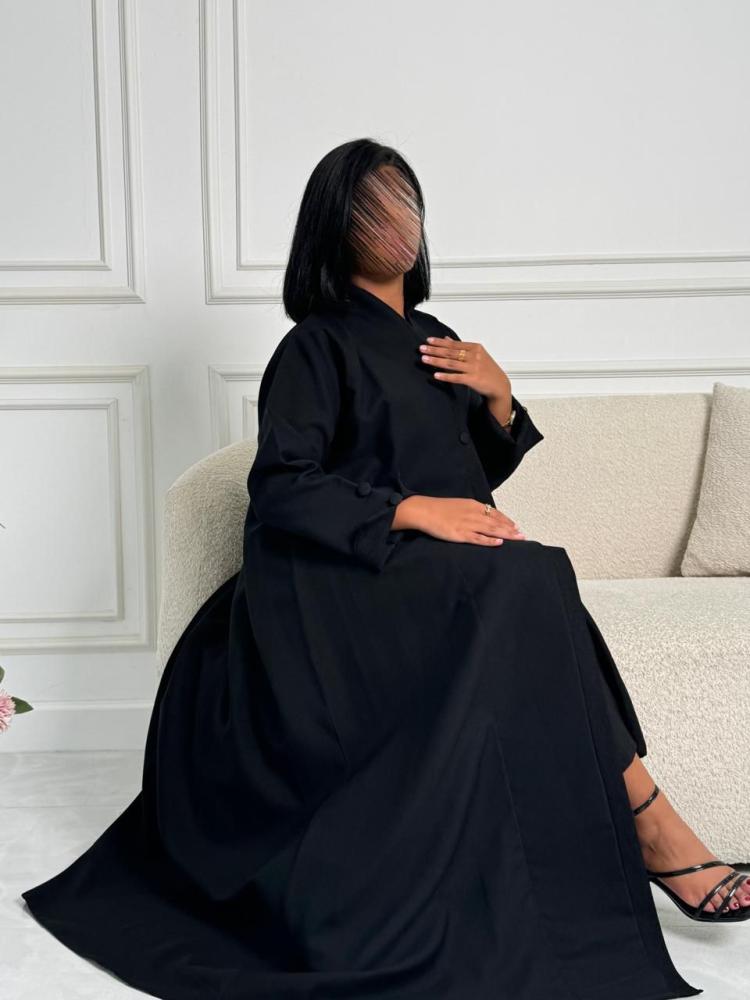 تداخل جميل بين نوعين من القماش مما يجعلها مميزه وفاخره وتاتي بقصة ساتره ومغلقه ..